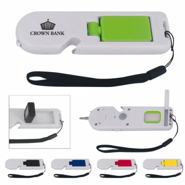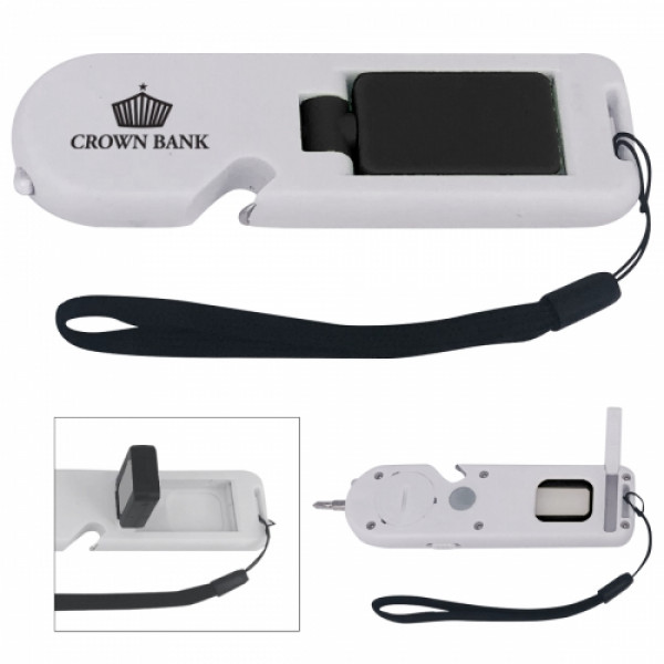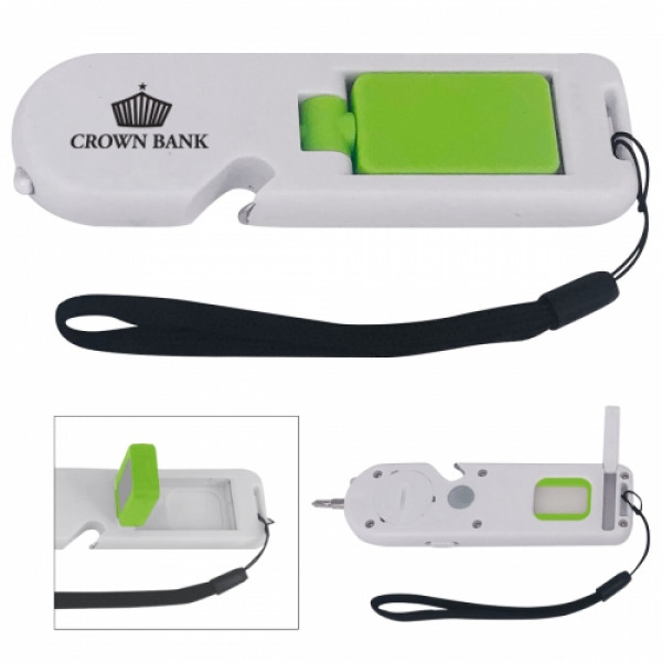 ::Extra Bright White LED Light::1 Flat Head And 1 Phillips Head Bits::Magnetic Port For Accepting Bits::Bottle Opener::Extra Bright Rotating COB Light::Slide Switch To Turn On/Off::Easy Carry Strap::Button Cell Batteries Included