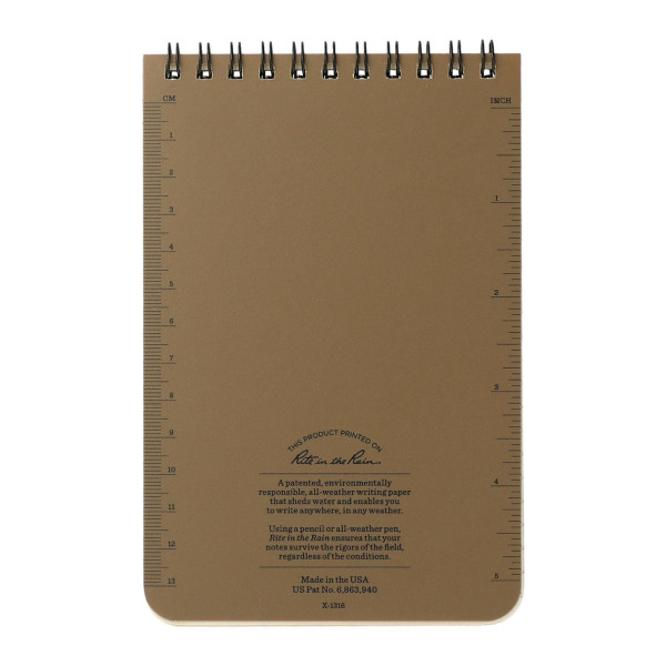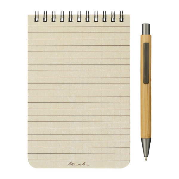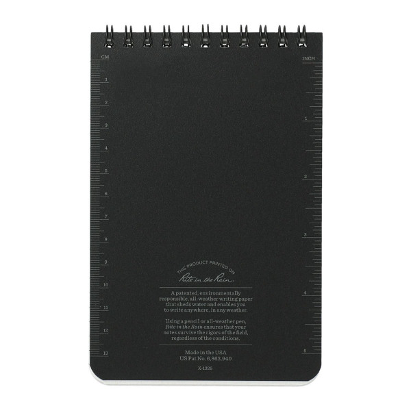 The 4” x 6” Rite in the Rain Top Spiral Notebook is tough enough to survive rain, sweat, mud and anything else mother nature throws at it. This notebook features a hard polydura cover to protect your notes from scratches and stains and impact-resistant Wire-O binding that will keep its shape. Includes 50 sheets of white lined paper. Through a partnership with 1% For The Planet, one percent of sales of all EcoSmart® products are donated to environmental nonprofits. For the best experience, when wet or dry use pencils, Rite in the Rain pens, wax markers, crayons or oil paint. When dry only, use permanent markers or standard ballpoint pens.