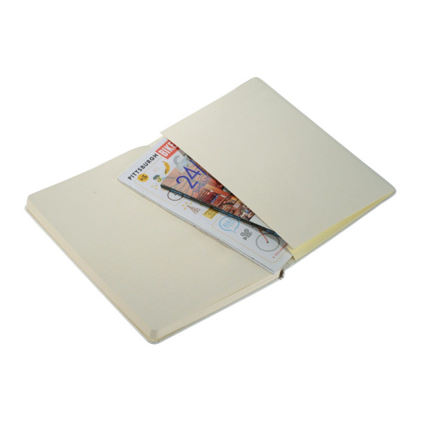 The 5.5'' x 8.5'' FSC® Mix Ambassador Bound Journal is a hard cover bound journal with 80 sheets of cream lined FSC® Mix paper. The Journal features built-in elastic closure, ribbon page marker, and expandable accordion pocket.