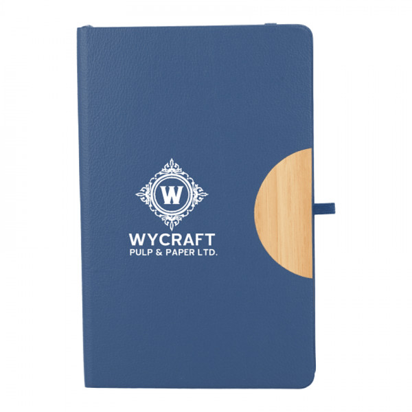 Immerse yourself in sustainability with the 5.5'' x 8.5'' Kaya Recycled PU and Bamboo Journal. This eco-friendly journal features a recycled polyurethane (PU) cover adorned with a bamboo accent. It comes complete with an elastic closure, ribbon page marker, pen loop, and a back paper document pocket for added functionality. With 80 sheets of recycled white lined paper, it combines style and eco-conscious materials seamlessly. As part of our commitment through 1% For The Planet, one percent of sales from all EcoSmart® products contribute to supporting environmental nonprofits. Choose a journal that makes a positive impact.