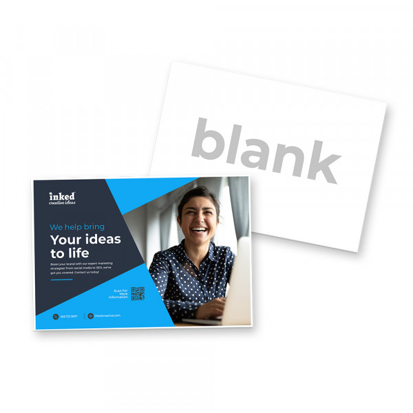 Get your message across loud and clear with our vibrant and high-quality single-sided promotional postcards. Single-sided print Weight: 110# Finish: Matte or Gloss