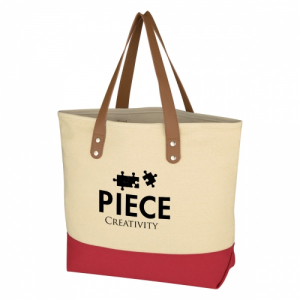 ::Made Of 12 Oz. Cotton Canvas::18" Leatherette Handles::Spot Clean/Air Dry