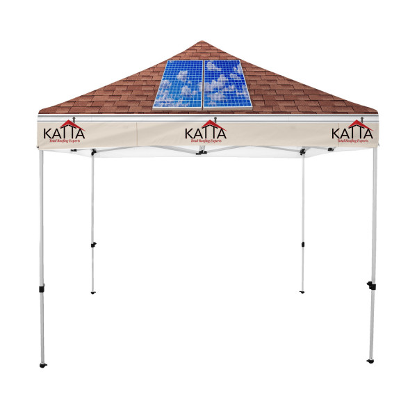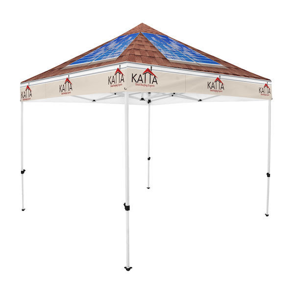 - Dye sublimation canopy features three-piece construction with separate pieces for the peak, valance, and main body