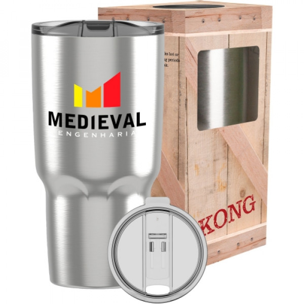 Introducing the 30 oz. Kong Vacuum Insulated Tumbler! Made from food grade stainless steel, this double-wall insulated tumbler is perfect for keeping your drinks at the ideal temperature. Whether you're sipping on a refreshing iced drink or enjoying a piping hot coffee, the Kong will keep it cold for 36 hours or hot for over 2.5 hours. And with its leak resistant lid, you can enjoy your drink with or without a straw. Plus, it comes with an extra-long straw and a retail style gift box, making it not only a great giveaway but also a perfect gift for your clients or co-workers. Upgrade your messaging with our ROMANCECARD for a personalized touch. Don't wait, get your Kong Vacuum Insulated Tumbler today!