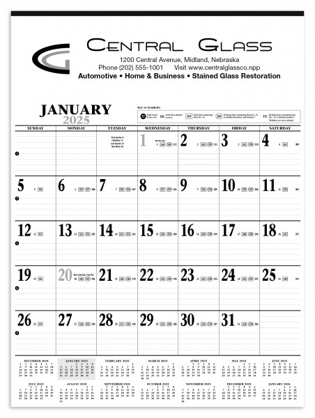 This calendar is printed on paper from FSC and SFI certified mills Gloss paper stock with UV coated cover High-quality imagery December top sheet included at no extra charge Top markets: manufacturing, construction, retailDetails