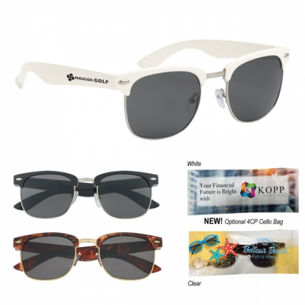The Panama Sunglasses are a stylish way to feature your logo on the go. These stylish half lens frames are available in three color choices. ::UV400 Lenses Provide 100% UVA And UVB Protection::Makes a great outdoor event giveaway!