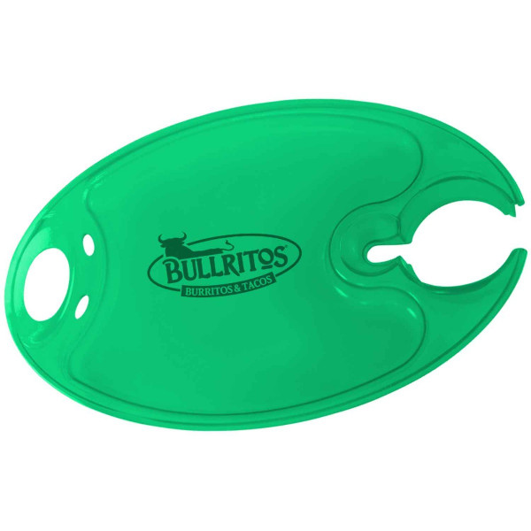 Holds hot or cold foods and safely carries a stemmed wine glass or 12 oz. beverage can. Safe serving surface.::Imprint on backside only.::Made in the USA.