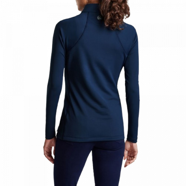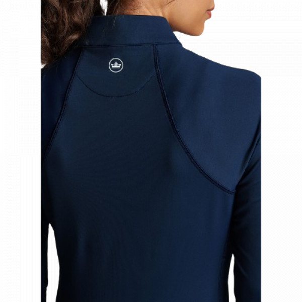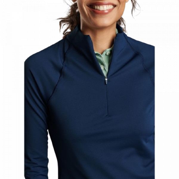 This women’s quarter-zip pullover blends sleek style with high-performance fabric, making it ideal for golf, travel, or everyday layering. Designed with a refined fit and raglan sleeves, it offers a comfortable, flattering silhouette that moves with you. Subtle metallic zippers add a polished touch to this lightweight and versatile piece.
