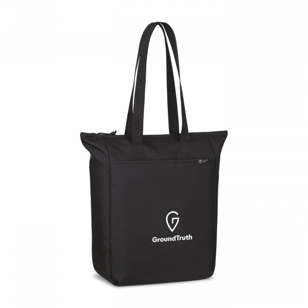 This modern tote bag offers a sustainable update to a classic design, crafted from recycled fabric and webbing made from plastic bottles. With a spacious main compartment, convenient interior zippered pockets, and a front slash pocket for quick access to accessories, it's perfect for everyday use. The 24.5" shoulder straps provide comfortable carrying, and the bag is both kid-friendly and CPSIA compliant for added peace of mind.