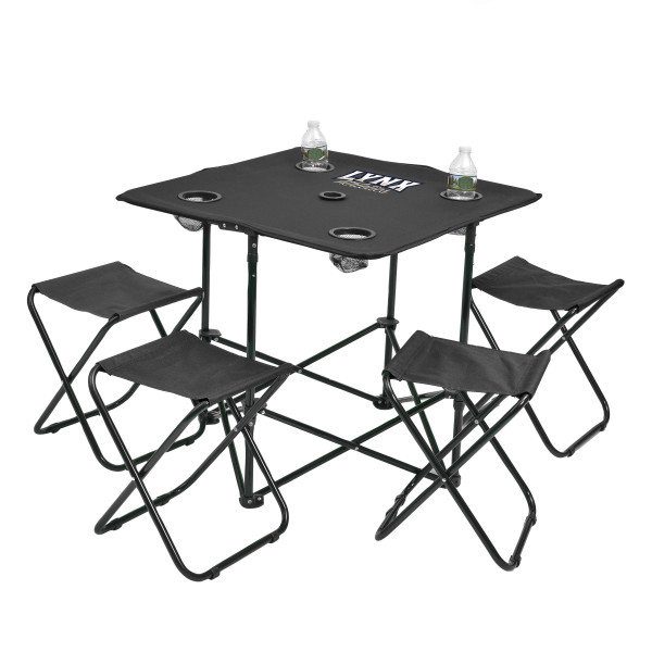 Take the party anywhere with this all-in-one table set that's perfect for tailgates, beach days, or backyard gatherings. Built for convenience and fun, it folds up easily and offers comfort and utility wherever you go. As a promotional product, it can be custom branded to showcase your message or logo in full color, making it ideal for events or giveaways.