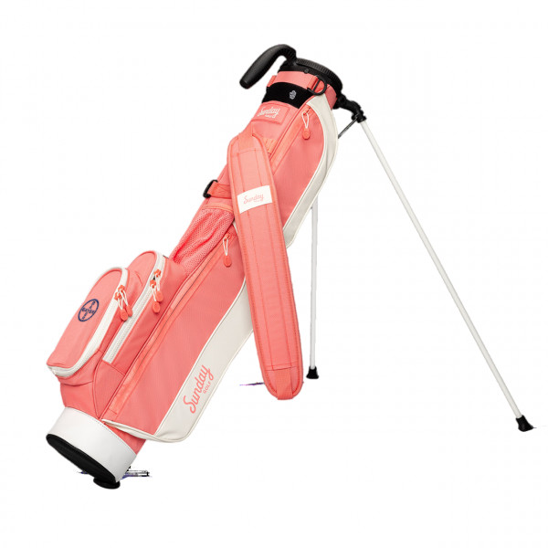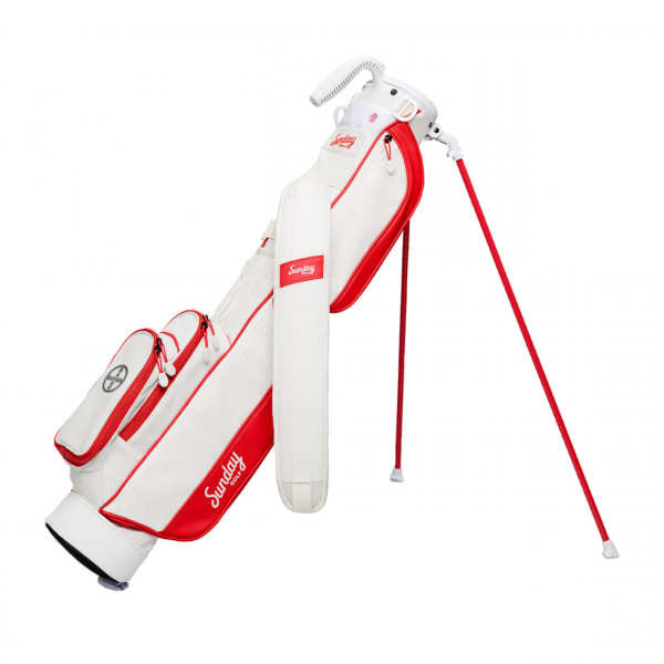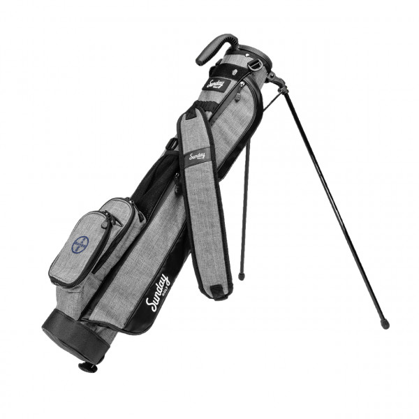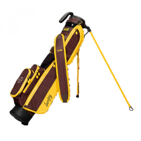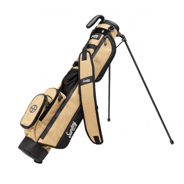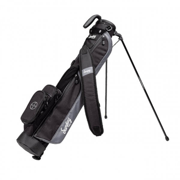 Perfect golf bag for the local par 3 course, practice range or walking a quick nine holes Carry up to 6 clubs, weighs only 1.95 lbs before adding clubs Full-length 2 way divider, built-in Carry handle Single strap, waterproofed zippers, tee holder, velcro glove holder Frosty pocket for a tasty beverage Velour lined valuables pouch Duaflex stand system