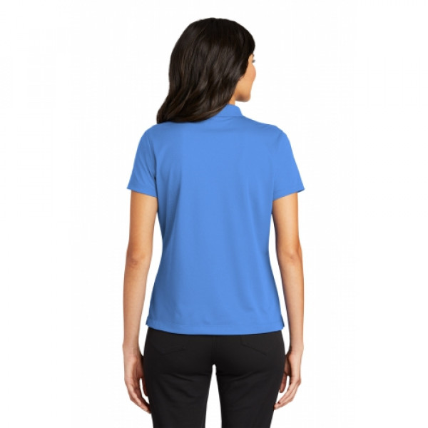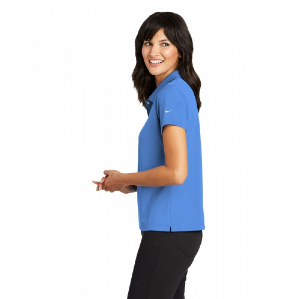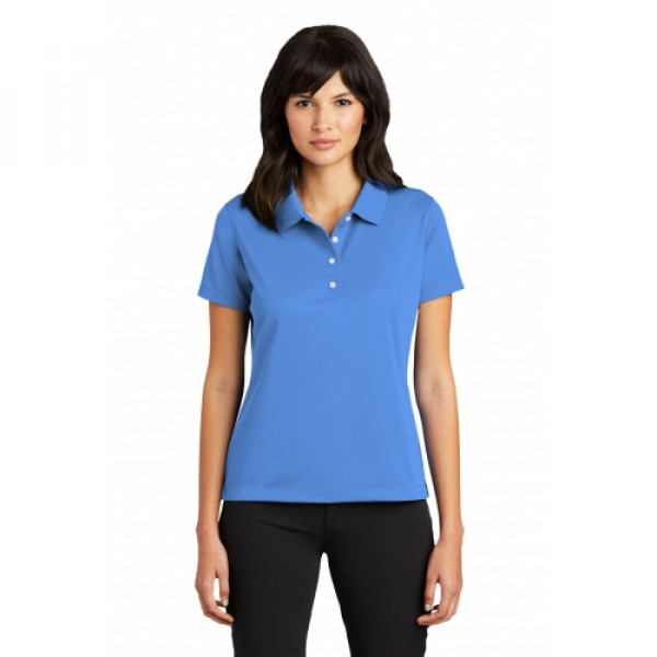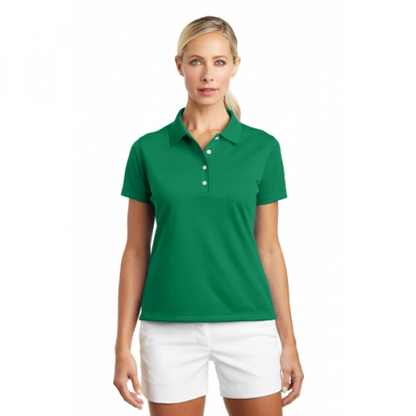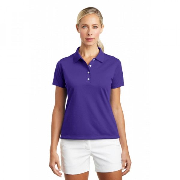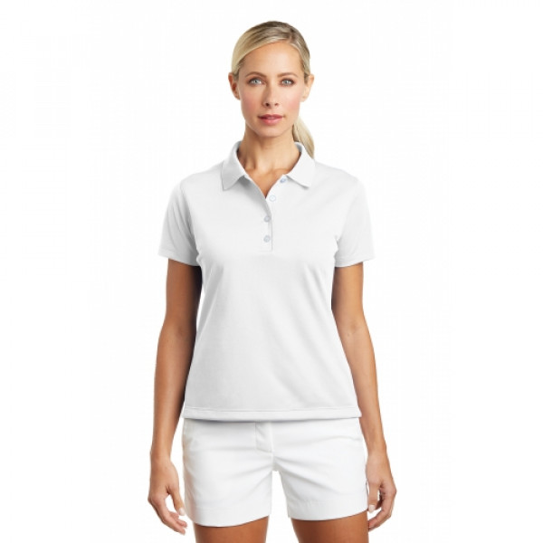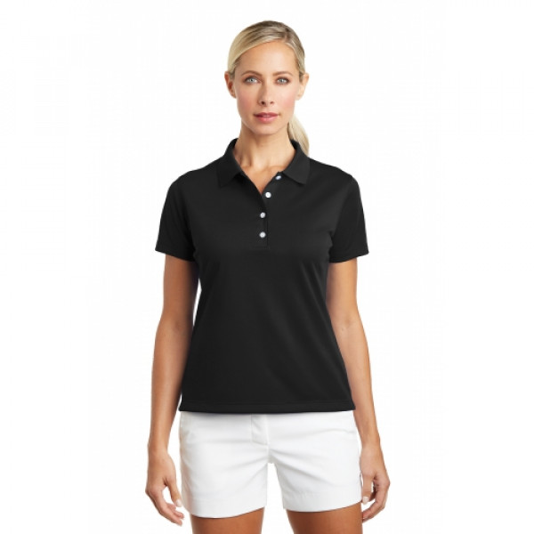Tailored for a feminine fit this style truly performs with Dri-FIT moisture management technology. Design features include a flat knit collar four-button placket and open hem sleeves. Pearlized buttons are selected to complement the shirt color. The contrast Swoosh design trademark is embroidered on the left sleeve. Made of 5.3-ounce 100% polyester Dri-FIT fabric.