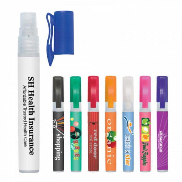 A handy and effective 0.34 oz hand sanitizer spray pump that delivers a light, pleasant fragrance while killing germs on the go. This compact unit meets FDA requirements and is ideal for custom branding or decoration—perfect as a promotional item to boost your brand visibility in everyday settings.