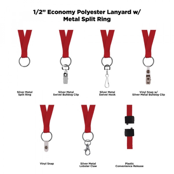 1/2" Economy Polyester Lanyard w/ Metal Split Ring & Attachment Options