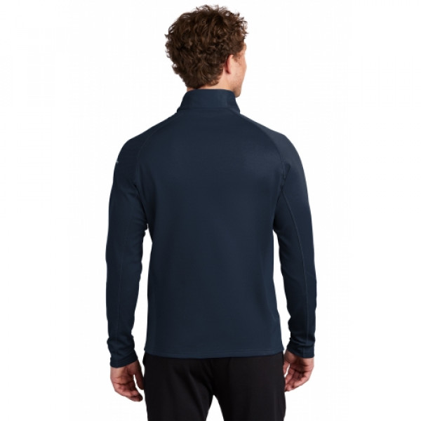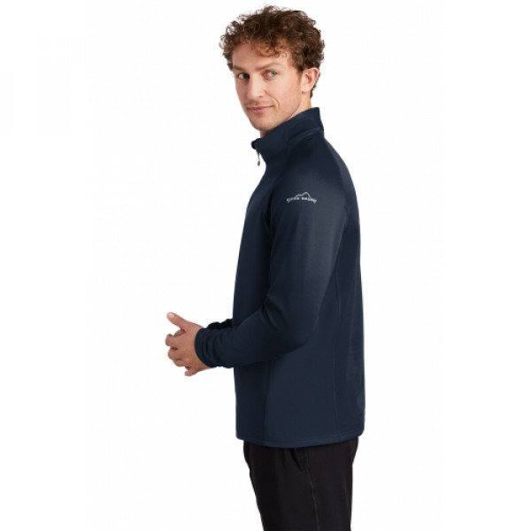 Smooth-faced fleece with a subtle grey print gives this 1/2-zip a sleek performance look.::Reverse coil zipper, open cuffs and an open hem. ::Welded zippered chest pocket, contrast Eddie Bauer logo heat transfer on left sleeve. ::Made of 12.8-ounce, 95/5 poly/spandex.