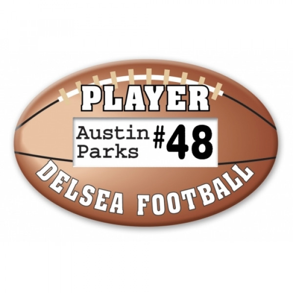 1 3/4" x 2 3/4" oval window button with 1 1/2" x 1/2" window and full color digital imprint. Includes Safety Pin attachment.::Made in the USA
