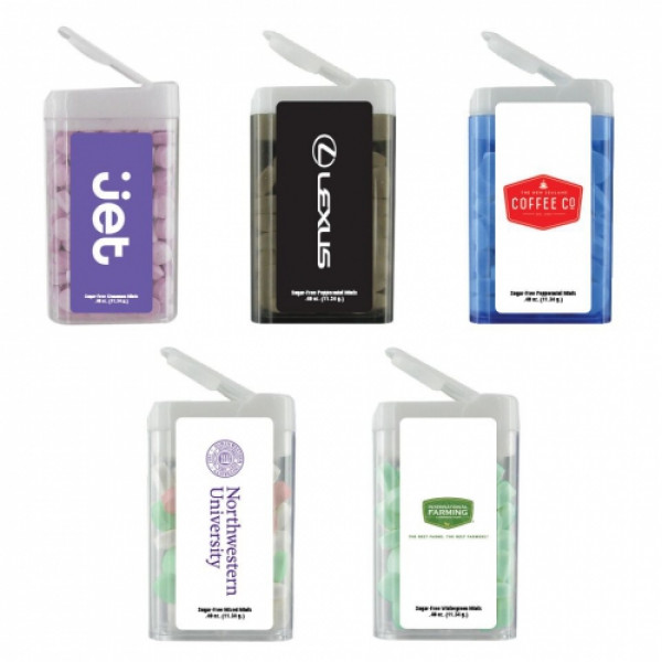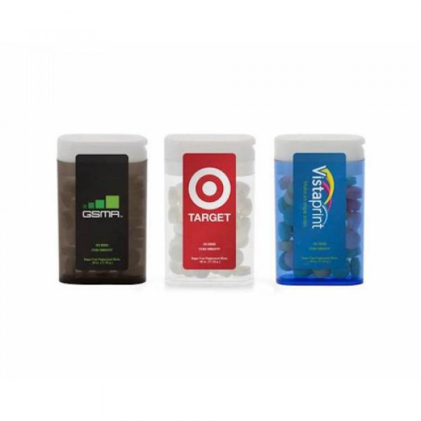 Come out on "top" with this fantastic marketing tool. Choose this Rectangular Flip Top Mint Dispenser as a terrific giveaway during promotional events. Tradeshows, conferences and fundraisers are all excellent choices to hand out this item. Add your logo to this 1 3/8" x 2 3/8" x 5/8" product for a wonderful opportunity to promote your business. It's shown with an optional clear label. Enhance your promotion by ordering this item today.