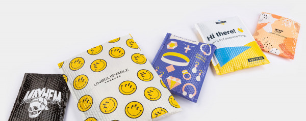 Custom bubble mailers are a great e-commerce shipping option. Each mailer is printed in full color and made with a durable, tear-resistant material. The bubbles add a padded insulation to protect what’s inside.