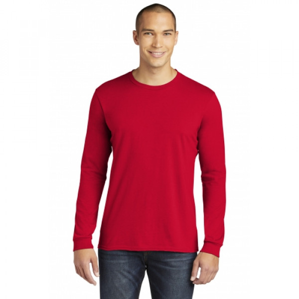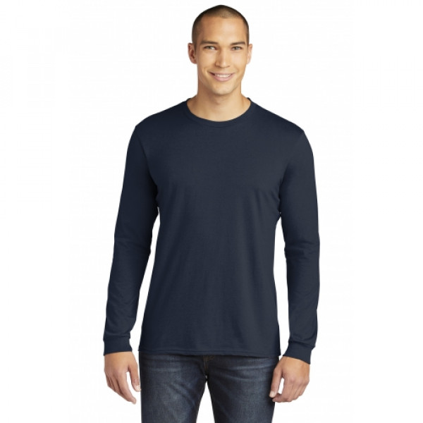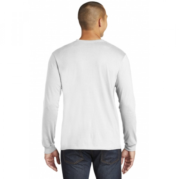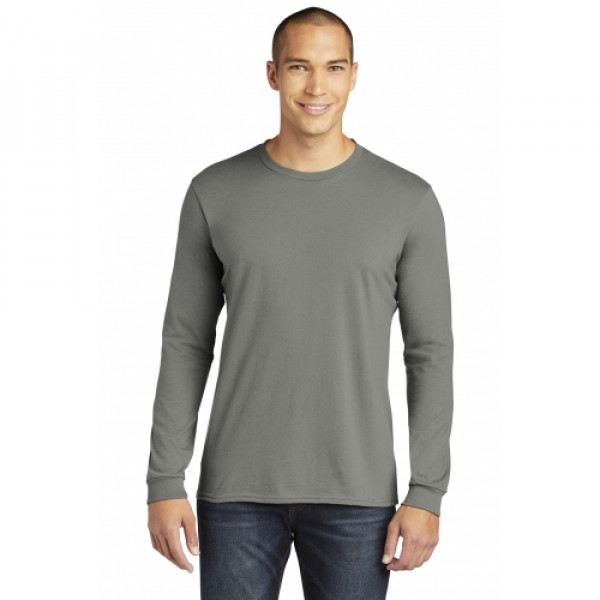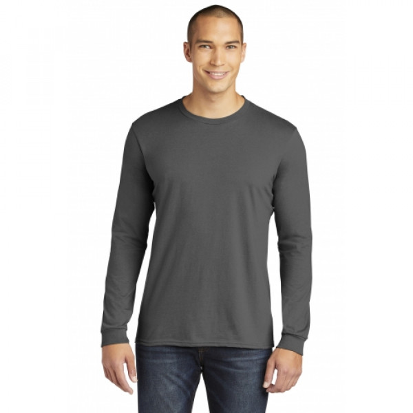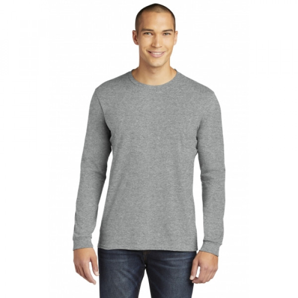 ::4.3-ounce, 100% combed ring spun cotton::65/35 poly/ring spun cotton (Heather Blue, Heather Green, Heather Purple)::90/10 ring spun cotton/poly (Heather Grey)::TearAway label::Seamed collar::Shoulder-to-shoulder taping::Rib knit cuffs::Double-needle sleeves and hem