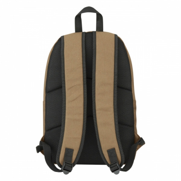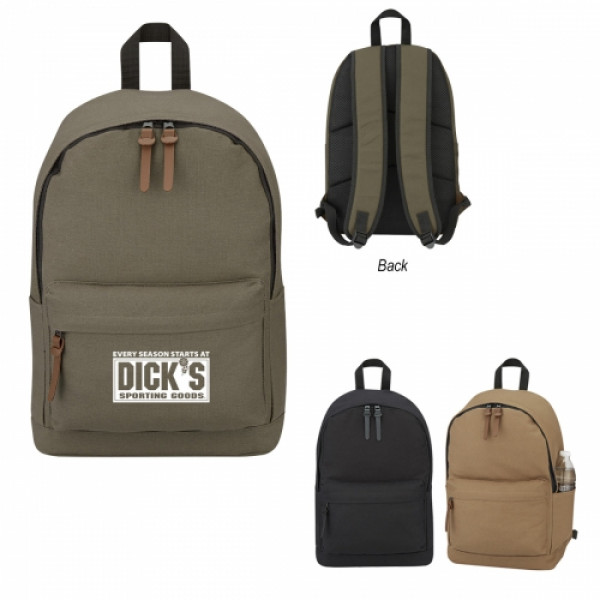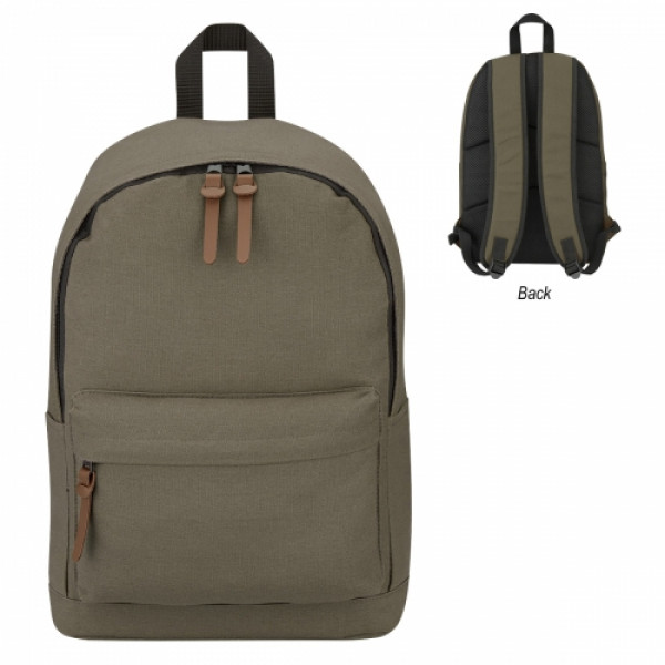 ::Made Of 16 Oz. Cotton::Adjustable Padded Shoulder Straps And Web Carrying Handle::Double Zippered Main Compartment With Inside Pocket And Padded Back For Laptop::Zippered Front Pocket::Side Pockets::Spot Clean/Air Dry