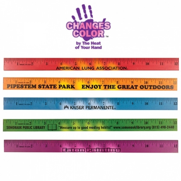 Add a fun twist to everyday measuring with this 12" Mood Wood Ruler! Designed with an English scale and a unique thermochromic finish, this ruler changes color with the heat of your hand, making it both practical and interactive. A great choice for schools, offices, and promotional giveaways, it can be custom branded to keep your logo top of mind.