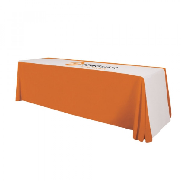 This table runner drapes across the width of the table so it won't cover a design or logo printed on the front or your table throw.::Constructed of polyester poplin::Drape it over a bare table or pair it with a table throw to create a multilayered look::Your artwork will be imprinted on the top of the runner; the remaining surface of the runner is dyed to the selected stock color (see the “Choose Option” menu for stock color options)::The runner will be finished with a clear thread surge along the entire fabric edge for a clean look::Table throw sold separately