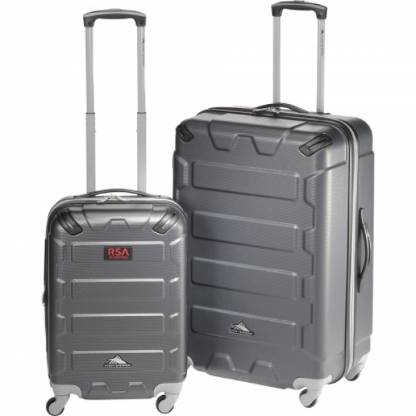 ::2 Piece nested luggage set that includes a 22" and 30" Hardside luggage piece shipped in one box. ::Made with durable and lightweight ABS hardside frameless construction. ::Durable impact-resistant corner protectors. ::Spring-loaded, low profile grab handles. ::Zippered expansion gusset increases capacity. ::360 degree spinner color-accent wheels allow for effortless motion. ::Push-button, color-accent pull out handle. ::Main compartment nylon coil zipper with lockable, color accent pulls. ::Fully-lined interior with buckled compression strap and zippered divider with a large zippered mesh pocket.::22" Body Dimensions: 19.6"h x 13.8"w x 9.8"d::22"::Overall Dimensions: 22.5"h x 14.75"w x 10.75"d::30" Body Dimensions: 27.6"h x 18.5"w x 13.2"d::30" Overall Dimensions: 30.0"h x 20.25"w x 12.25"d::2 Luggage tags included as a decoration option.