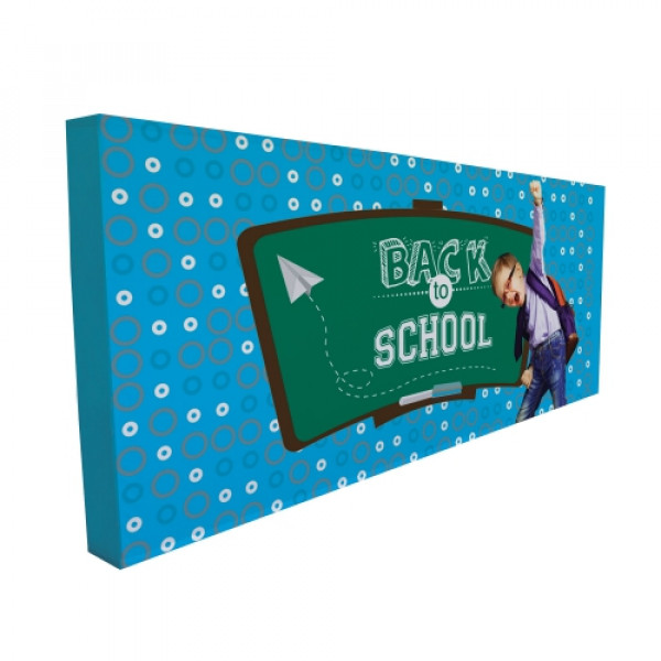 This pop-up display transforms from a compact unit to an impressive backdrop in minutes.::237" of seamless, uninterrupted graphic space::Graphic panel covers the front and two sides of the Splash display's frame; the back of the frame is not covered::Easy to set up: just attach the banner to the two frames and stand up the display (you will not have to tether the two frames together)::Lightweight aluminum frame with nylon plastic hubs::Hook-and-loop fasteners make it easy to install graphic panels::Hubs feature patented interchangeable faceplate design::US Patent #9214104::Your artwork will be dye sublimated on block-out fabric::Block-out fabric is designed to prevent light from showing through the display, making it a good option for brightly lit areas