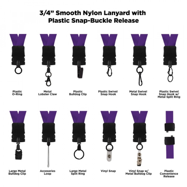 3/4" Smooth Nylon Lanyard With Snap-Buckle Release & Attachment Options