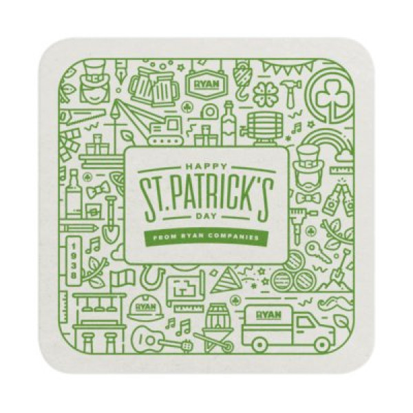 The 3.5" Square Coaster - 35 pt is an economical way to display your message or logo at an event or party. The coaster can be debossed or imprinted in up to 5 colors- we will PMS match your colors FREE. :: Made and printed in the USA:: Recyclable and biodegradable:: Metallic and Neon inks available at no additional charge