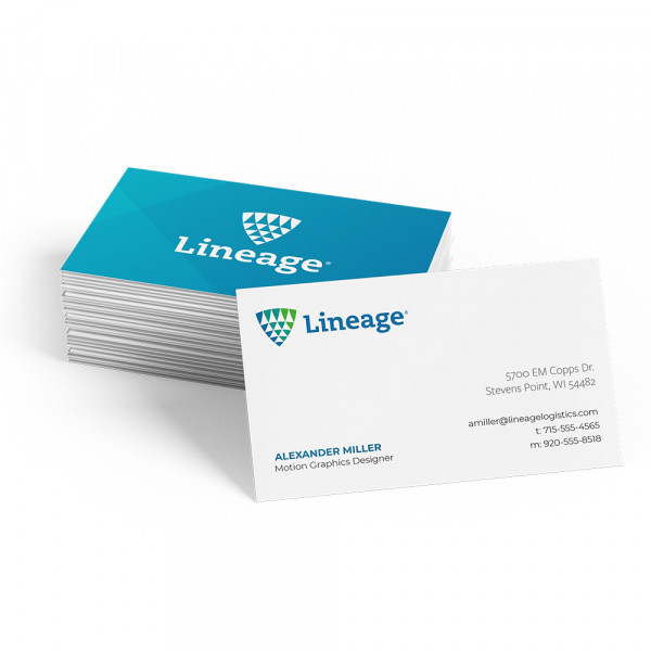 Lightweight business cards, perfect for carrying with you on the go without weighing you down. Double-sided print Weight: 100# Finish: Pearl Corners: Square, 1/4" Rounded, or 3/8" Rounded