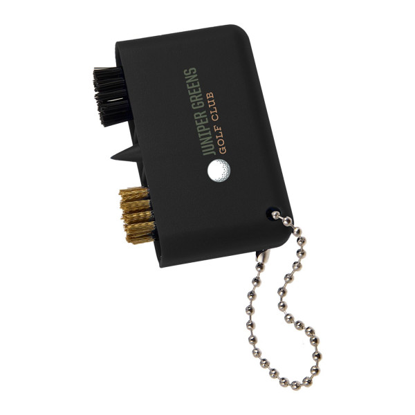 The 3-in-1 Golf Cleaning Multi-Tool is all you need to keep your golf clubs and accessories clean and ready for action! This compact, multi-functional tool features a brass wire brush for tougher cleaning, a nylon brush for delicate surfaces, and a pointed plastic tool to clean out grooves in clubs. With a convenient ball chain attachment, it easily clips onto your golf bag or belt loop. One percent of sales of each purchase of this tool supports environmental nonprofits through a partnership with 1% For The Planet.