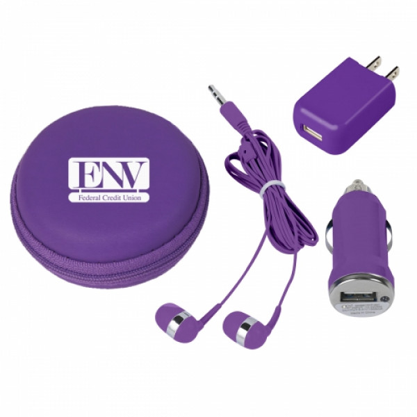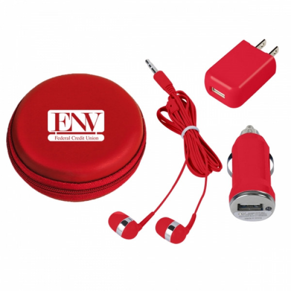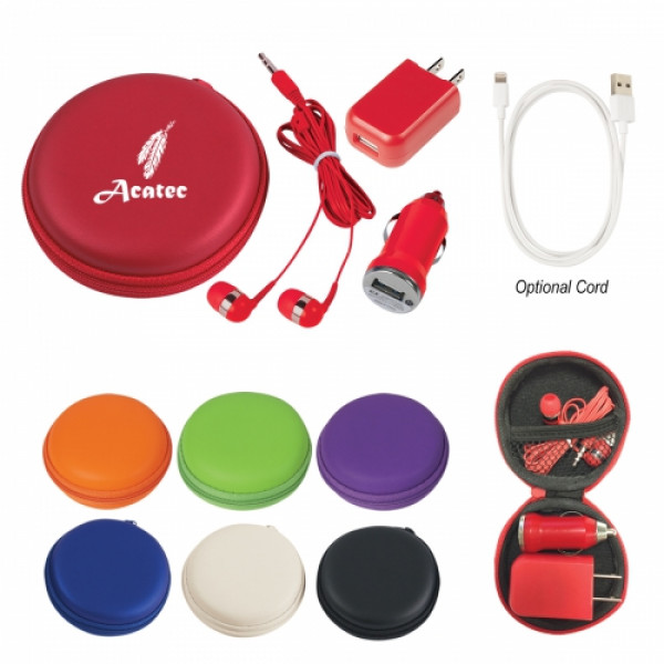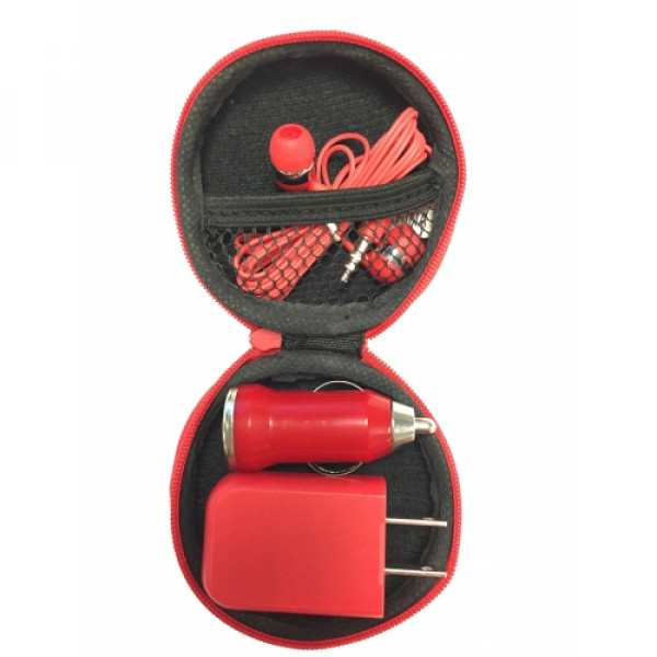 ::Includes Car Adapter, UL Listed USB A/C Adapter (UL File #E340754, Model #SC Series) And Earbuds::Protective Round Zippered Travel Case::Interior Mesh Pocket::Matching Earbuds With 48" Cord