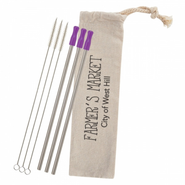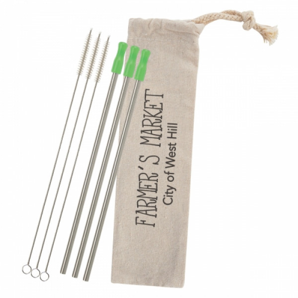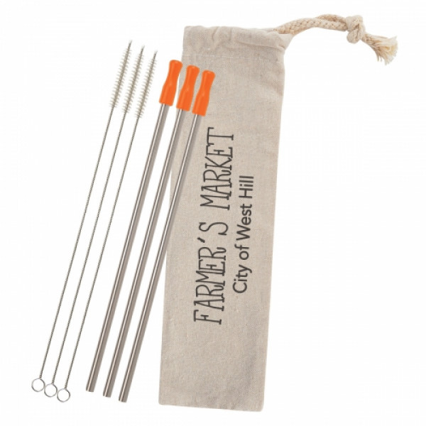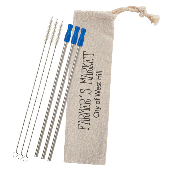 ::Three Stainless Steel Straws, Silicone Tip and 8 Oz. Cotton Carrying Pouch::Reusable::Includes Five Wire Cleaning Brushes::Hand Wash Recommended