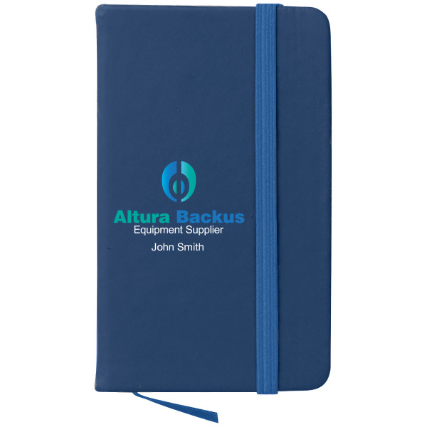 Introducing our custom promotional 3" x 5" Journal Notebook, the perfect companion to capture your boldest dreams and brightest ideas! With 80 lined pages, this pocket-sized notebook is ready to inspire you on your journey. The matching bookmark and strap closure add a touch of elegance, ensuring your thoughts and secrets stay securely tucked away. Crafted with a durable PVC cover, this journal is built to withstand your daily adventures. Let this notebook be your trusted confidant and fuel your creative fire, because with every page, you're one step closer to greatness.