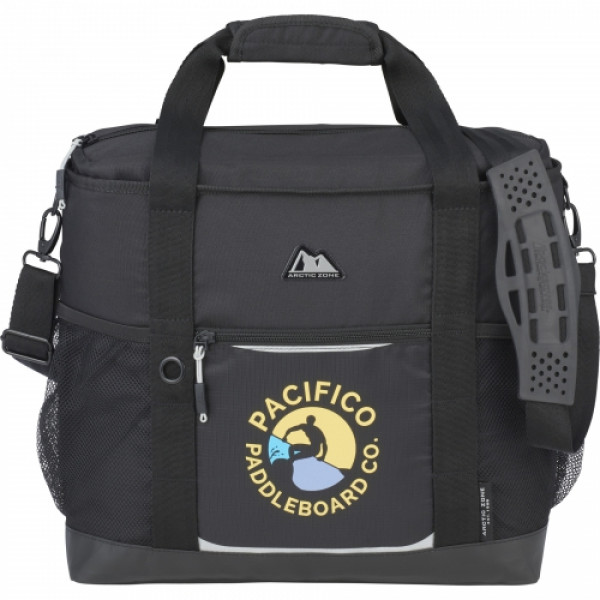 The Arctic Zone 30 Can Ultimate Sport Cooler features a sturdy, PEVA lined, zippered main compartment. This sport cooler includes grab handles, an adjustable shoulder strap, two side mesh pockets and a front zippered pocket.