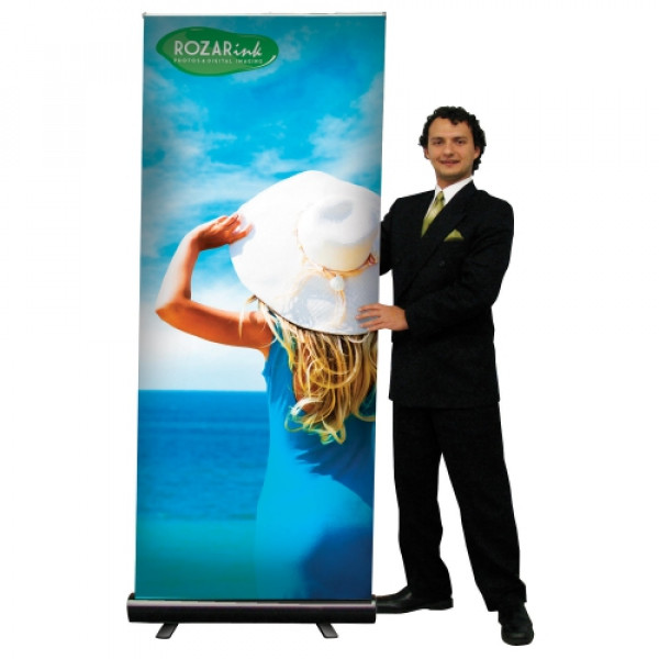 The popular Economy retractor is versatile and budget-friendly, making it a great option for the cost-conscious marketer.::Double-footed design for stability::Lightweight aluminum base::Hardware available in black or silver::Graphic is printed on no-curl hybrid film::Banner attaches with snap rail on top and banner tape on bottom::Shock cord pole makes it easy to set up and take down::100 RCAT rating::One-year hardware warranty::Carry case included::Product Size : 32 in (W) x 83.5 in (H) x 15 in (D)