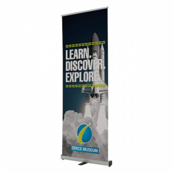 The Ideal retractor is designed from the ground up to be a quick, simple solution for short-term promotional applications.::Lightweight aluminum base with plastic ends::Plastic swivel foot for stability::Three-section shock cord pole makes set-up and take-down easy::Banner attaches with snap rail on top and banner tape on bottom::Printed on tear-resistant Titan™ polypropylene media::Banner is single-sided::Snug-fitting carry case included::25 RCAT rating