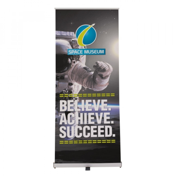 The Ideal retractor is designed from the ground up to be a quick, simple solution for short-term promotional applications.::Lightweight aluminum base with plastic ends::Plastic swivel foot for stability::Three-section shock cord pole makes set-up and take-down easy::Banner attaches with snap rail on top and banner tape on bottom::Printed on tear-resistant Titan™ polypropylene media::Banner is single-sided::Snug-fitting carry case included::25 RCAT rating