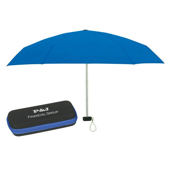 Stay prepared for unexpected showers with this sleek 37" arc telescopic folding travel umbrella. Compact and lightweight, it folds down to just 6" and stores neatly in a matching zippered EVA case, making it perfect for travel, commutes, and daily use. A practical and stylish promotional product, it can be custom branded with your logo for lasting visibility rain or shine.