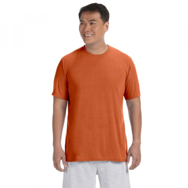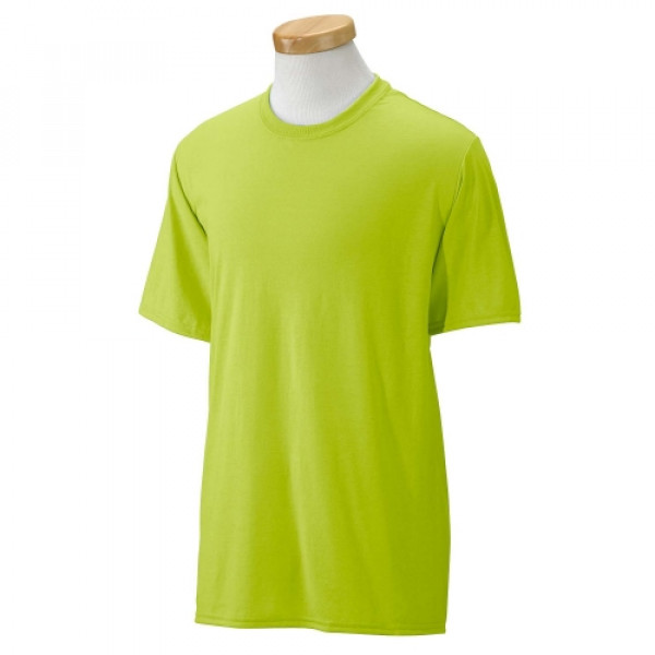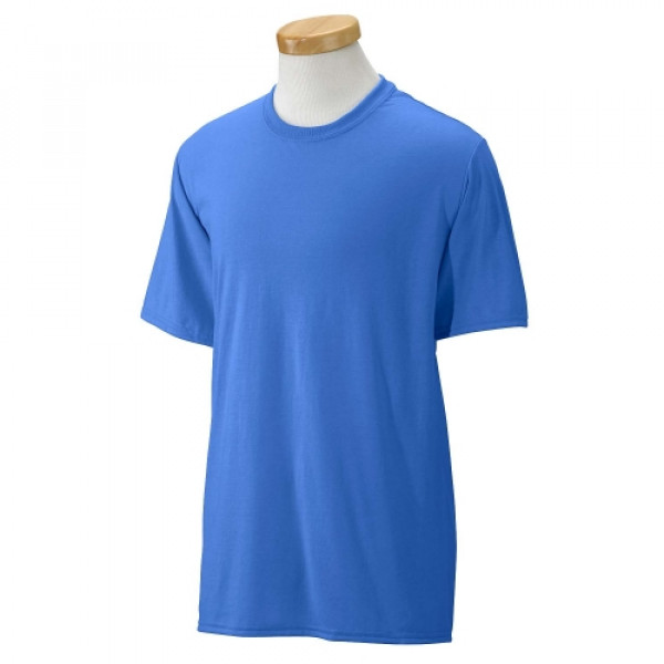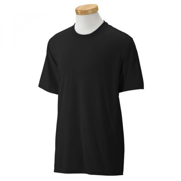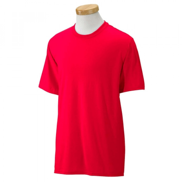 The Gildan 4.5 oz. Performance T-Shirt is made from 100% polyester jersey knit. It is snag resistant and has moisture wicking and antimicrobial properties.::Feels like your favorite tee! ::Sizes: S-3XL::Heat transfer label::Care label in bottom hem::Choose from 8 colors