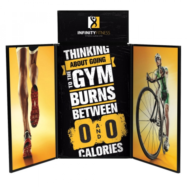 Create an eye-catching presentation with this popular, lightweight display.::Kit C includes the display, a clip-on header and four graphic panels::Plastic frame has square corners::Seamless design with hidden double-acting hinges::Display is covered in loop fabric that is compatible with hook (hook-and-loop-style) fasteners::Loop fabric cannot be imprinted::Easy to fold for transportation and storage::A channel on the header simply clips onto the top of the display::Graphic panels are constructed of Titan™ no-curl laminated media, which can be imprinted with full-color artwork::Hook-and-loop fasteners make it easy to install graphic panels
