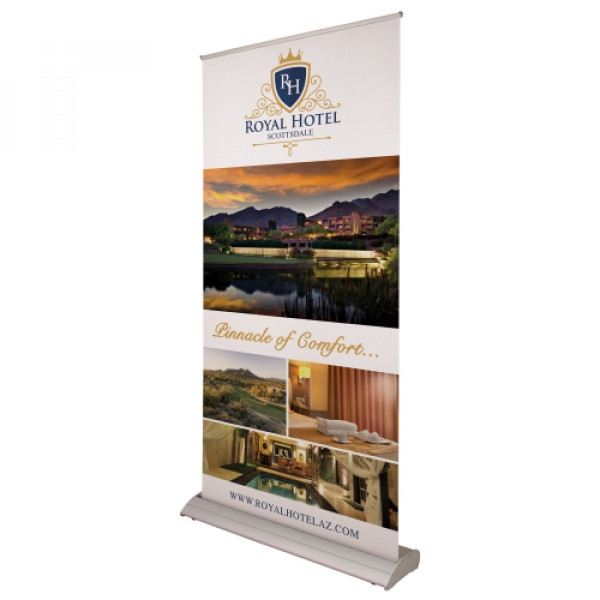 The Deluxe Pro Retractor features a rounded base with durable aluminum end caps, and hook-and-loop fasteners let you swap out banners easily.::Durable aluminum base stands up to frequent use::Flip-lever telescoping pole makes setup and adjustment simple::Banner attaches with hook-and-loop fasteners so it's easy to swap out::Artwork is printed on Titan™ no-curl opaque fabric::Banner is single-sided::Banner height is adjustable from 61.5" to 79.5"::200 RCAT rating