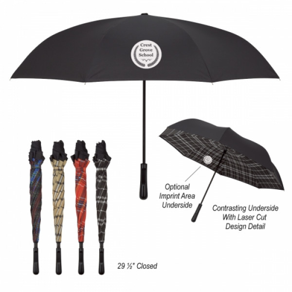 ::Manual Open::Metal Shaft::Inverted Design Keeps You Dry When Closing::Tartan Underside::Pongee Material::29 ½" Closed