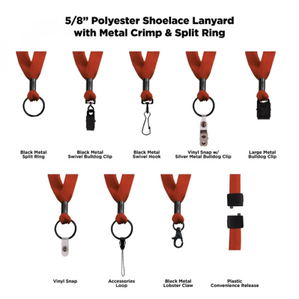 5/8" Polyester Shoelace Lanyard With Metal Crimp & Attachment Options