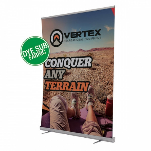 Create an impressive backdrop with this ultra-wide retractable banner.::Two-person setup::Heavy-duty base is available in silver only::Two swivel feet for stability::Two shock cord poles support the banner::High-tension base springs keep the banner taut::Banner attaches with snap rail on top and banner tape on bottom::Artwork is dye sublimated on Titan™ no-curl fabric::Banner is single-sided::100 RCAT rating