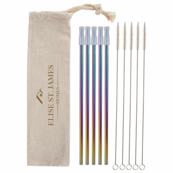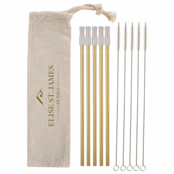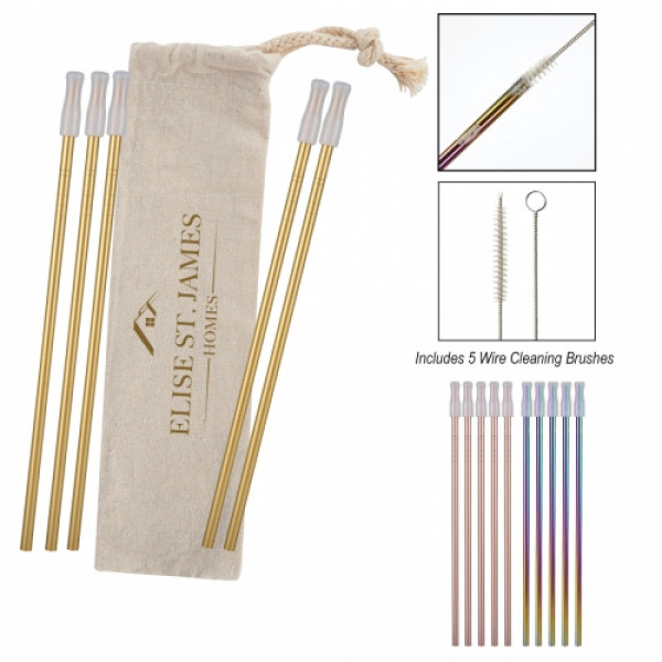 5 Pack Park Avenue Stainless Straw Kit w/ Cotton Pouch