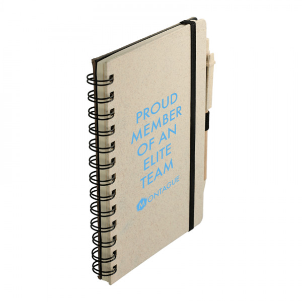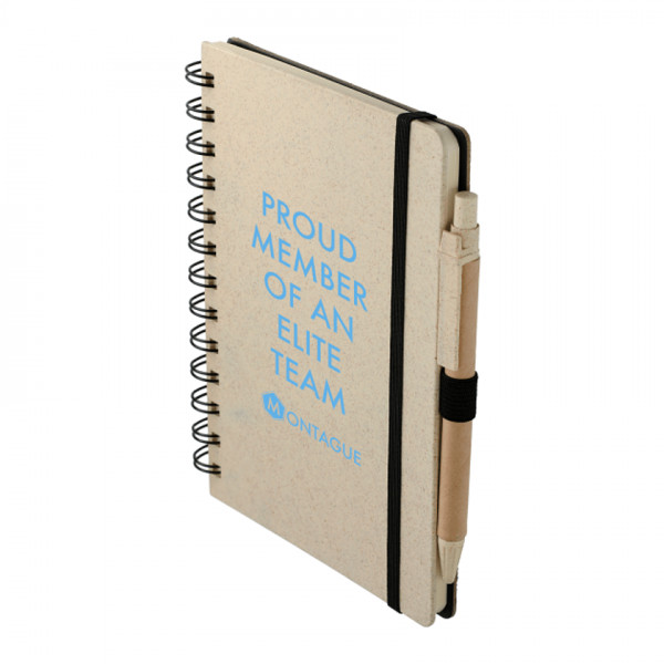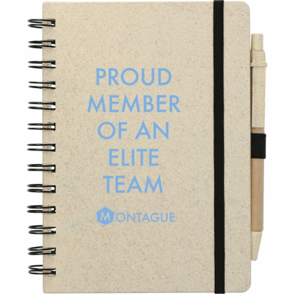 The 5" x 7" Wheat Straw Notebook with Pen is an eco-friendly solution for your note-taking needs. Made with a wheat straw cover, this notebook offers a sustainable alternative without compromising on style or functionality. It includes 70 lined pages for jotting down notes, ideas, or to-do lists, and comes with a matching wheat straw pen secured by an elastic loop. The compact size makes it easy to carry, whether for work, school, or personal use.