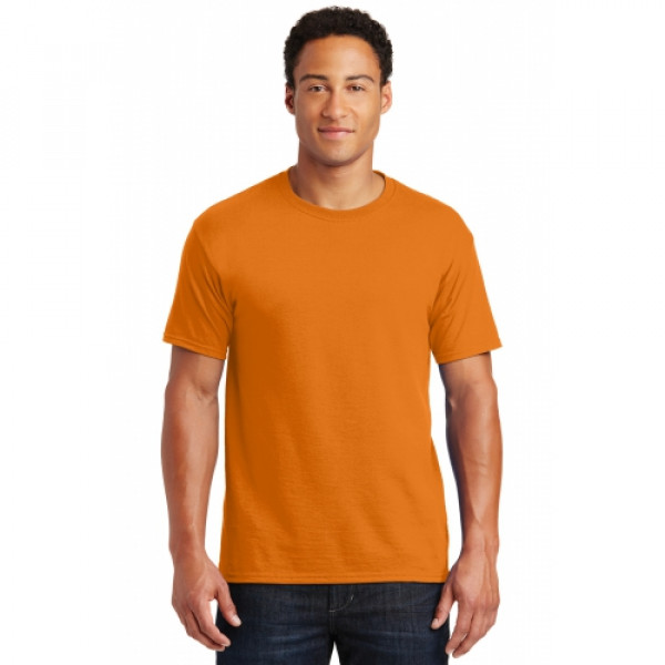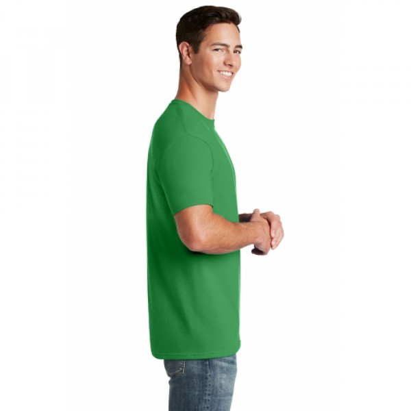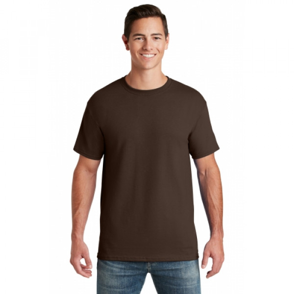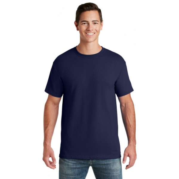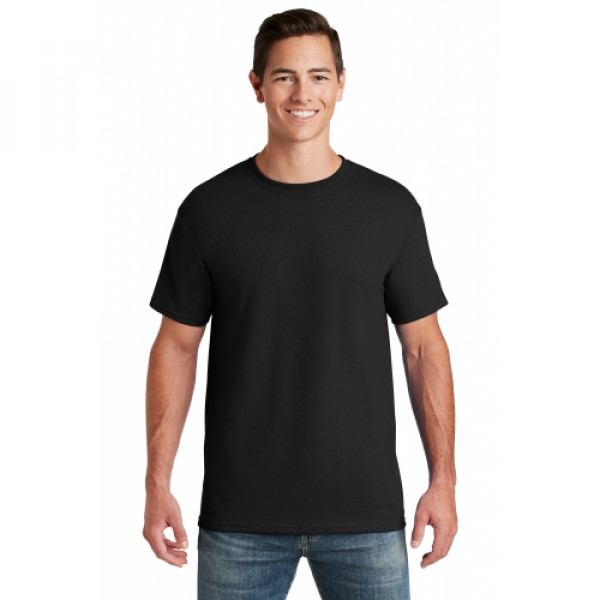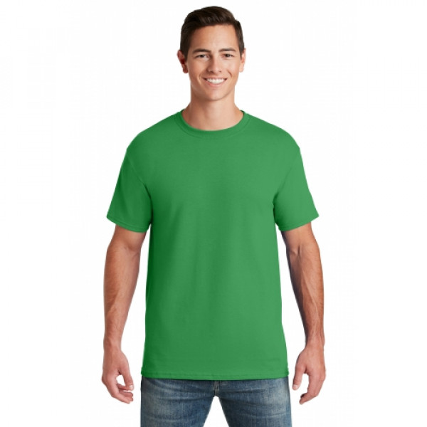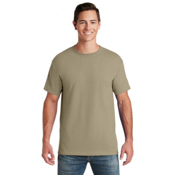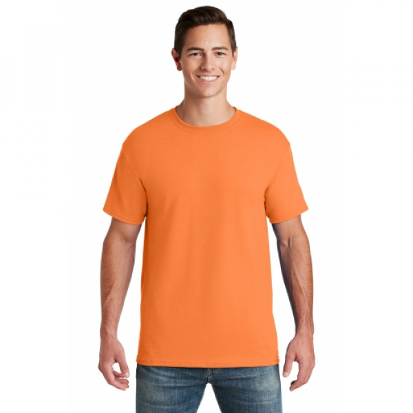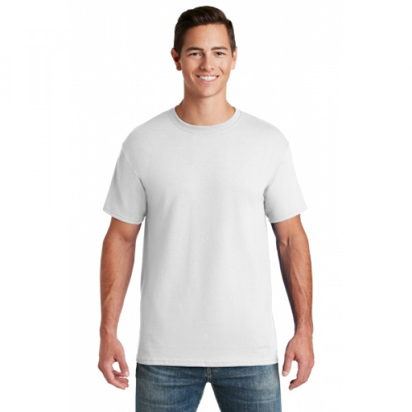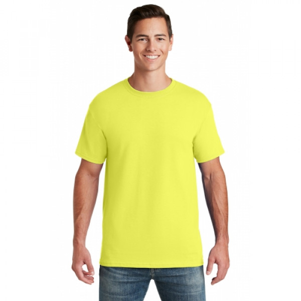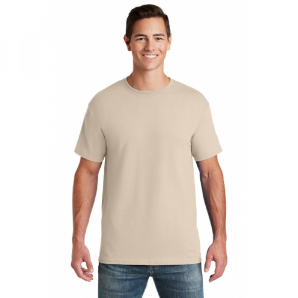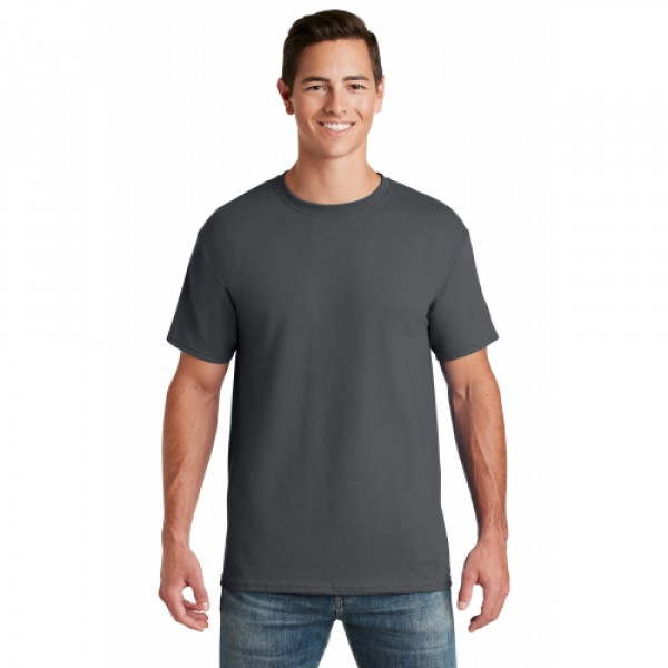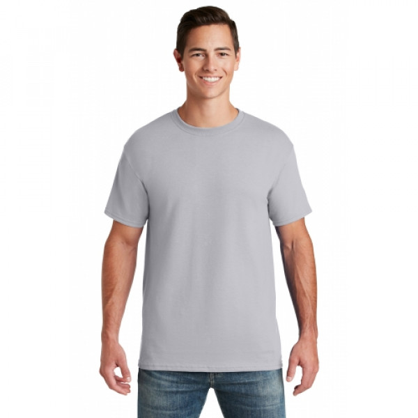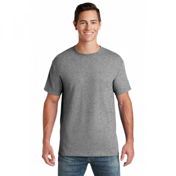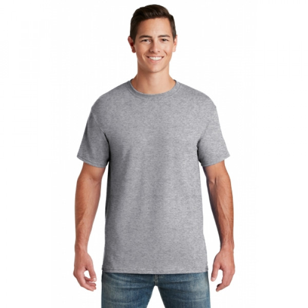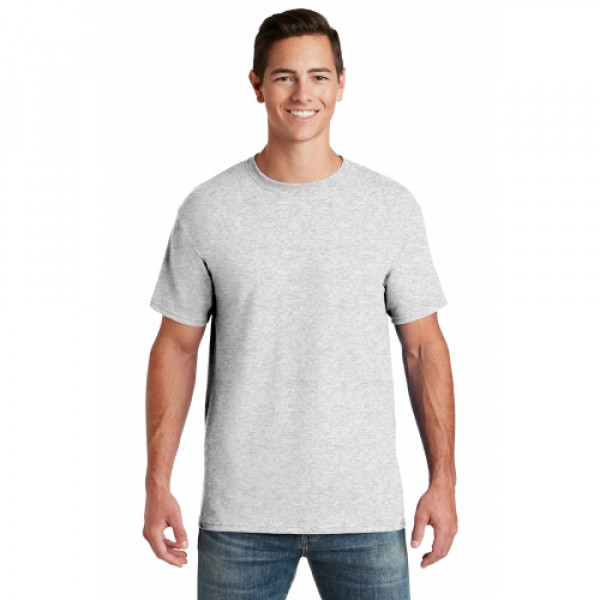 5.6-ounce 50/50 cotton/poly (preshrunk)Seamless body with set-in sleevesDouble-needle coverstitched on front neck Shoulder-to-shoulder taping Ash is 99/1 cotton/poly.Ash (formerly Birch)