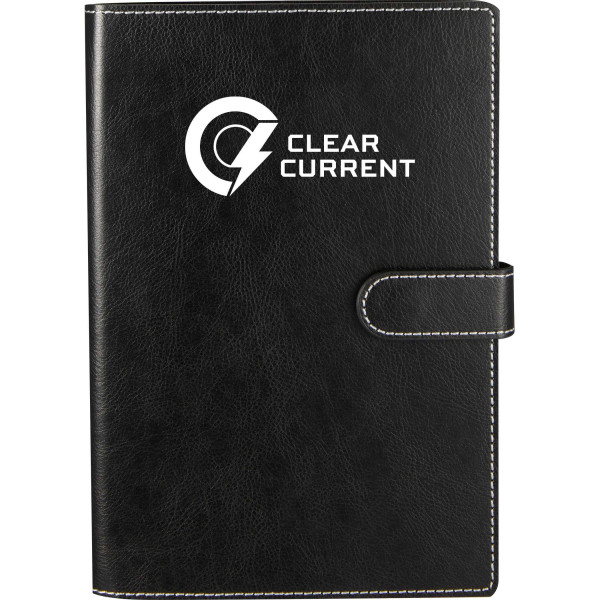 The 5.5" x 8.5" Recycled Refillable Journal is an eco-friendly promotional product that can be custom branded with your logo for a sustainable touch. Made with a 40% recycled polyurethane cover and featuring a magnetized closure, this journal combines modern style with everyday functionality. Inside, you'll find 80 sheets of recycled cream-colored lined paper and an interior pocket for business cards or small essentials—perfect for meetings, travel, or daily note-taking. Plus, every purchase supports environmental nonprofits through a partnership with 1% For The Planet.